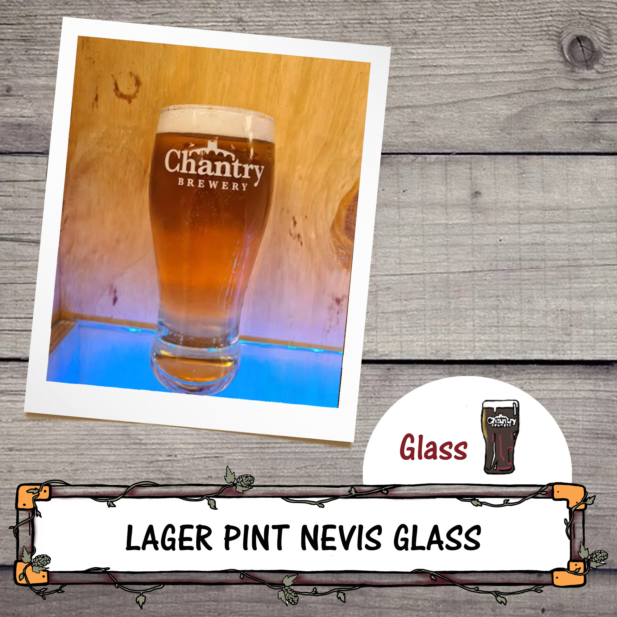Chantry Brewery logo embellished Lager Pint Nevis Glass with Nucleation